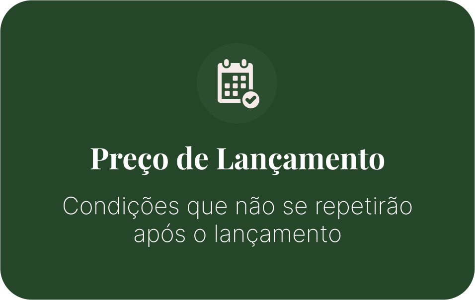 Um número limitado de unidades promocionais será liberado com as melhores condições de parcelamento do mercado. Cadastre-se agora e tenha acesso prioritário.